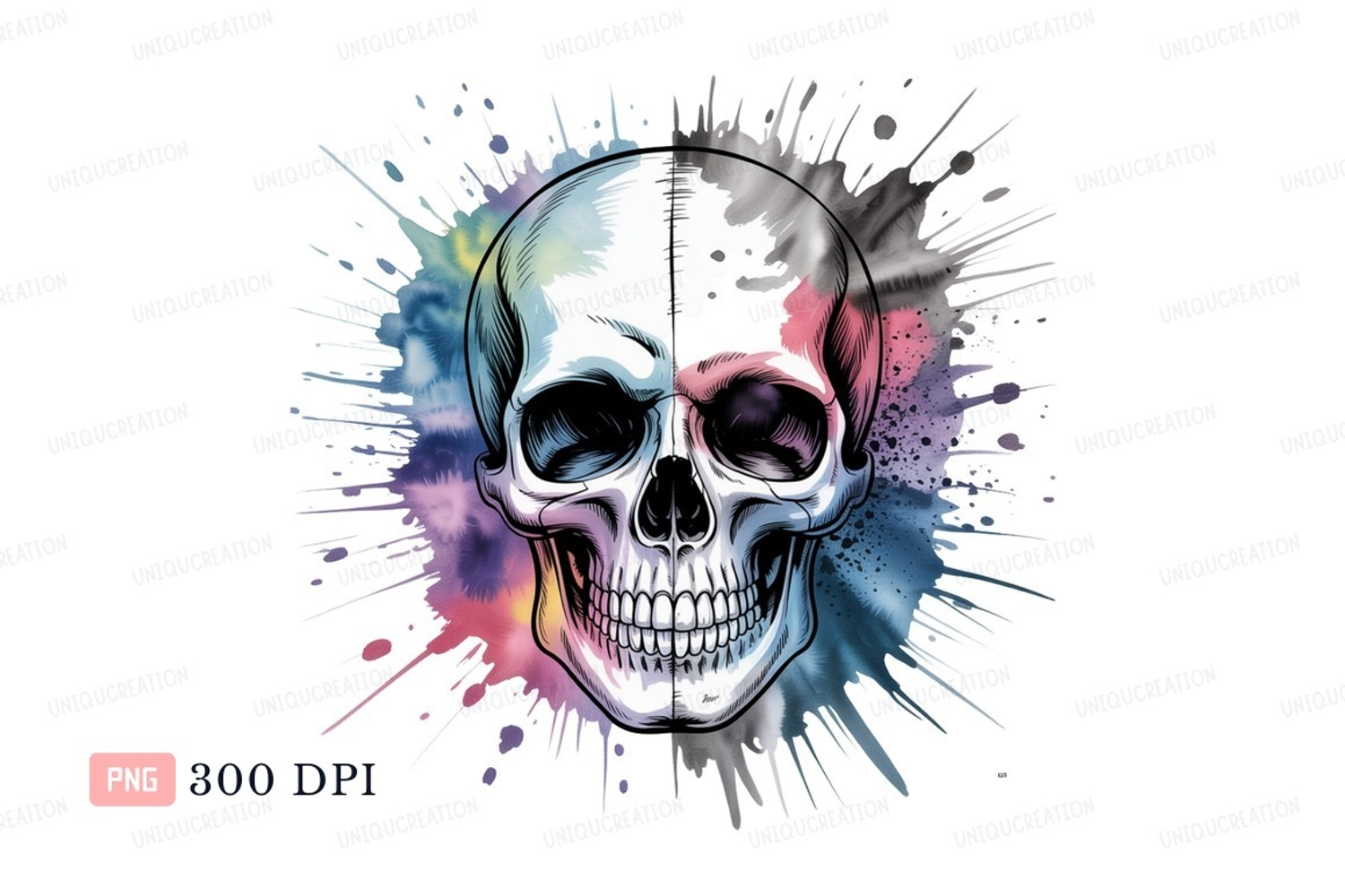 Skull watercolor splash paint splatter