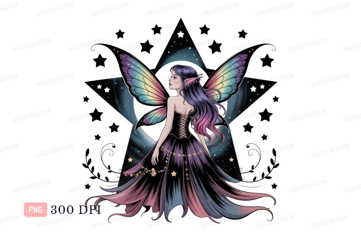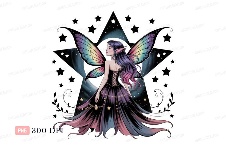 Fantasy Black Pink Fairy Dress Purple Blue Rainbow Wings Stars