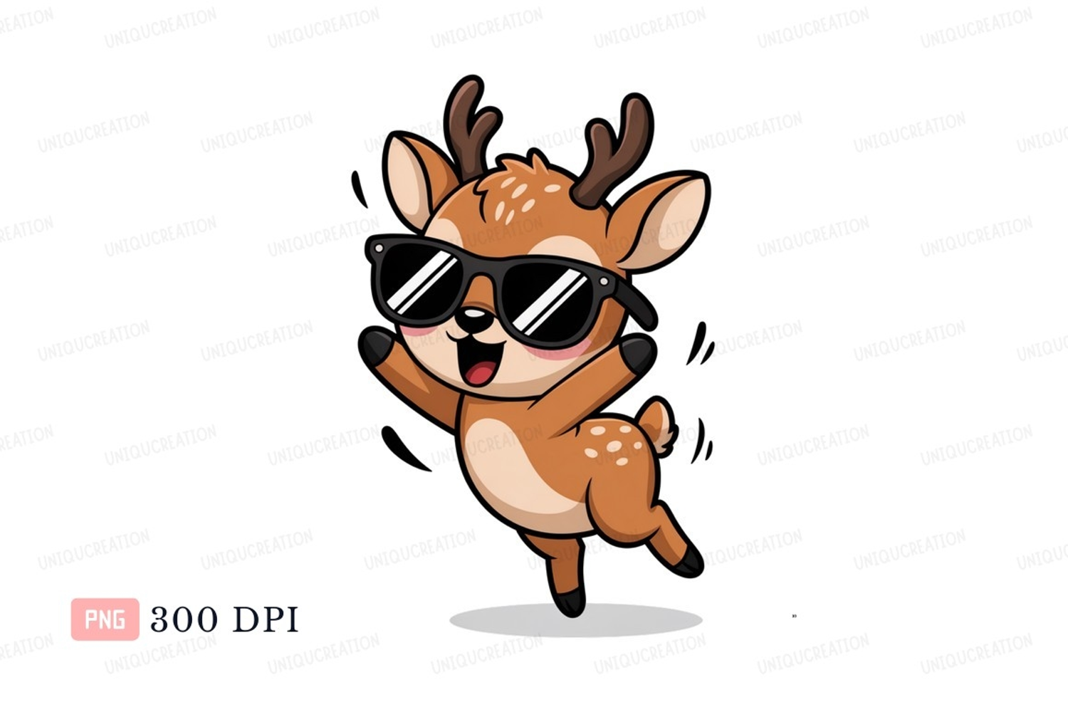 Cartoon Fun Animal Playful Cute Dancing Happy Brown Deer Sunglasses