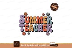 Lettering Retro Text Summer Floral Flowers Teacher Groovy Sublimation Frappe