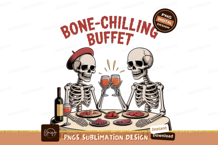 Skeletons dining wine cheers food example image 1