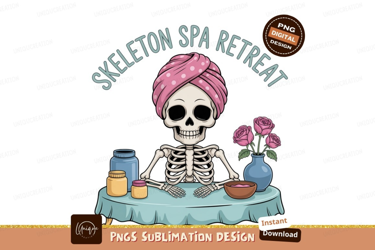 Similar Design Products to Skeleton spa retreat with pink turban and roses image
