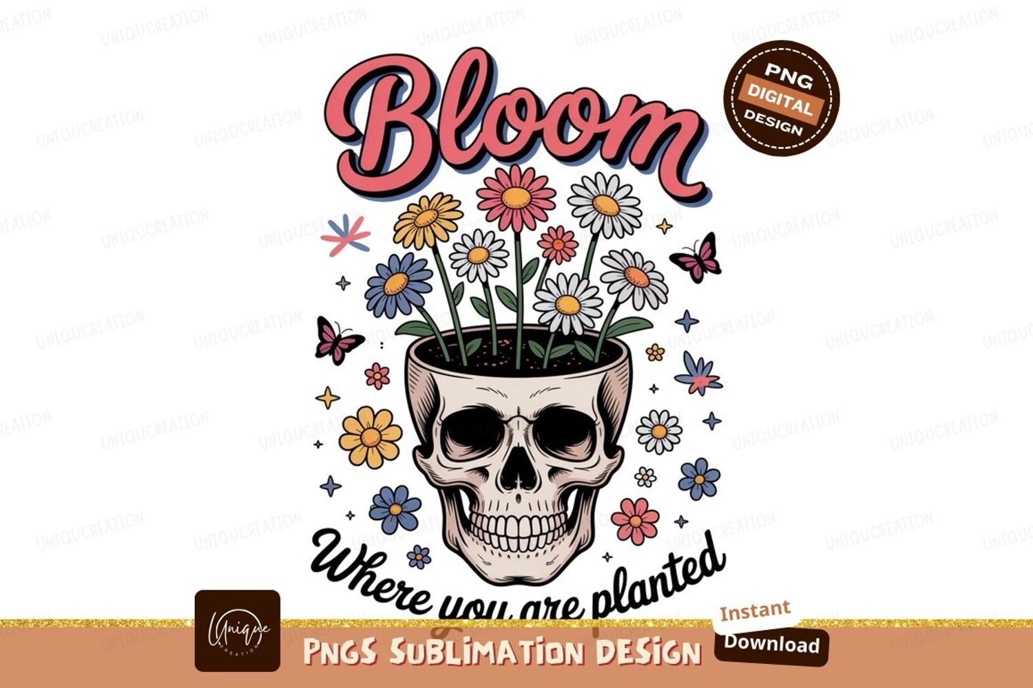 Similar Design Products to Skull flowers bloom sublimation daisies