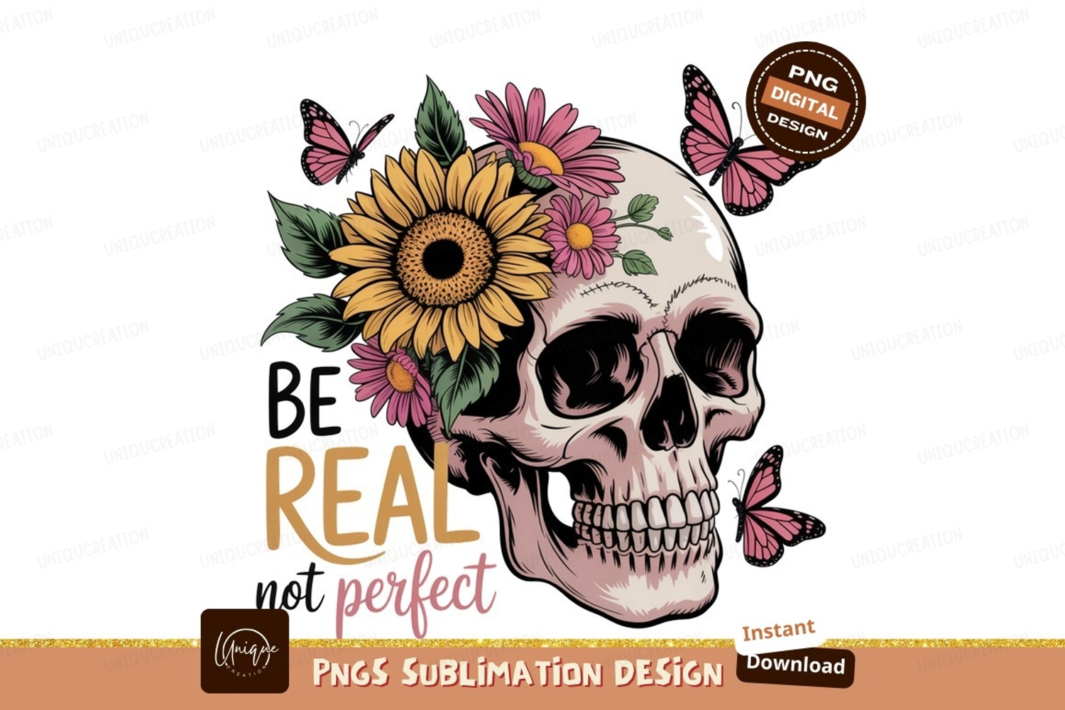 Skull flowers butterflies sublimation pink yellow example image 1