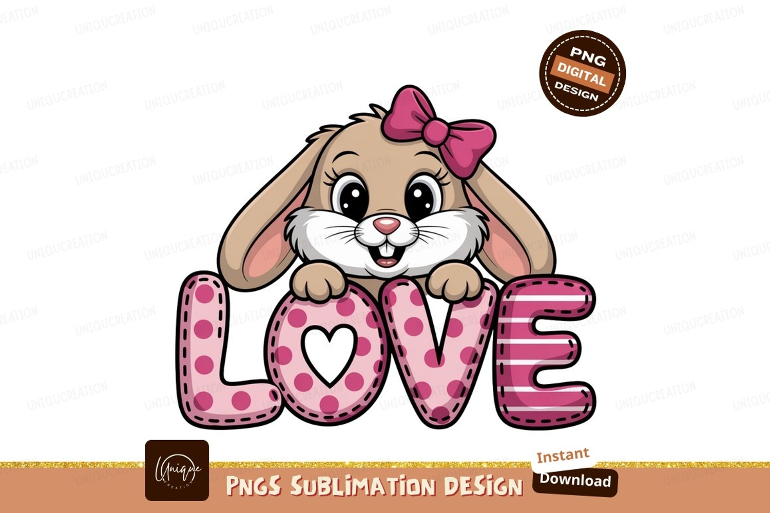Cute bunny with pink bow holding love letters rabbit example image 1