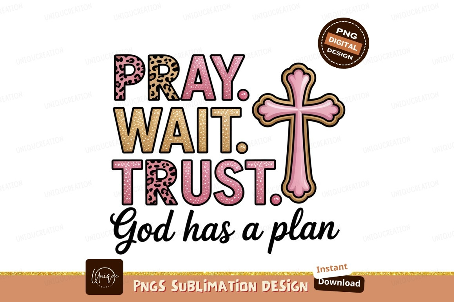Similar Design Products to Pray wait trust pink cross leopard glitter image