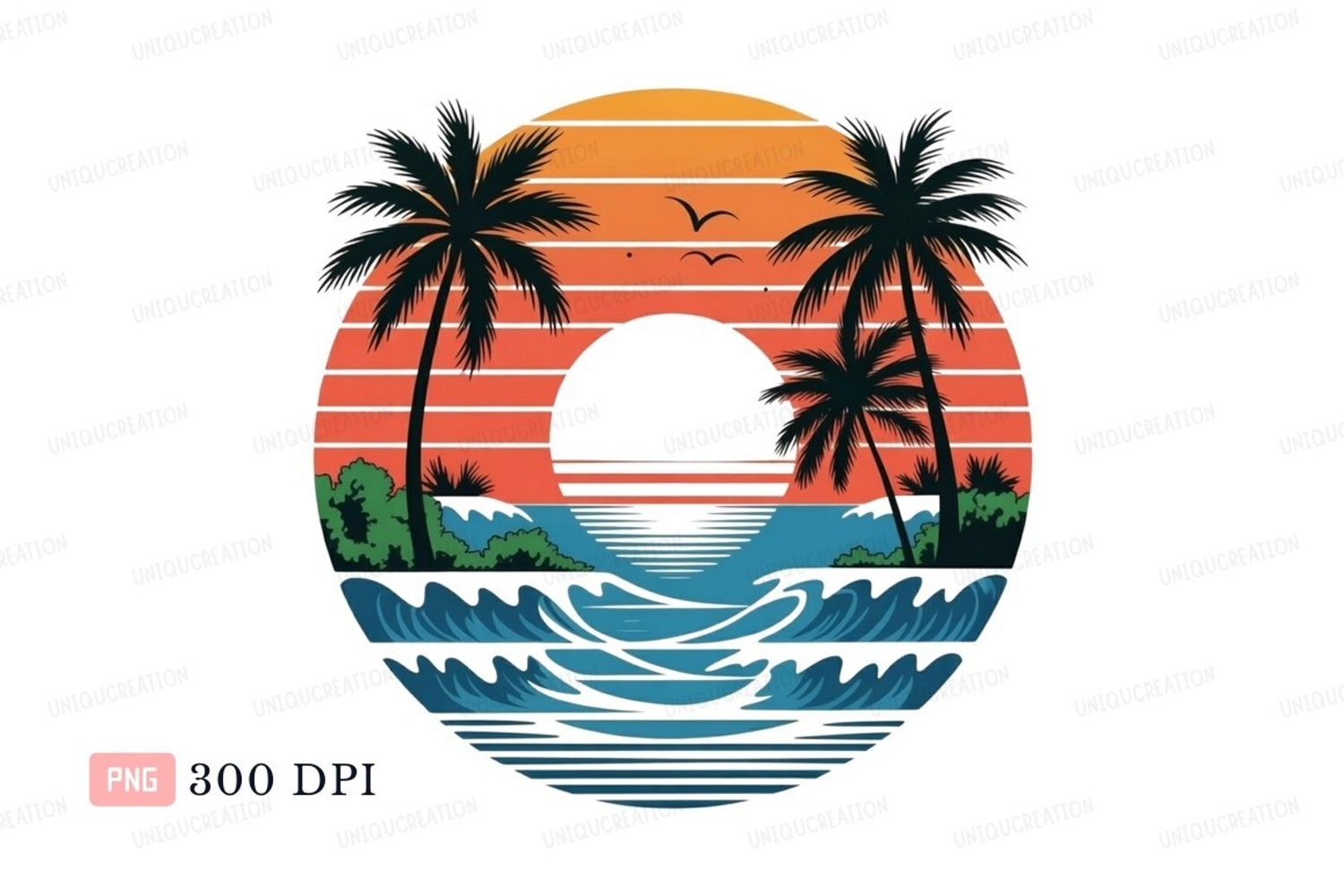 Similar Design Products to Tropical sunset ocean waves palm trees image