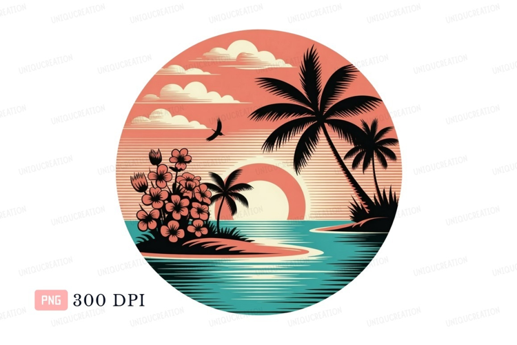 Similar Design Products to Tropical island sunset with palm trees and flowers