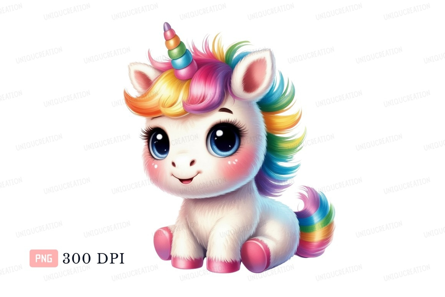 Cute fluffy unicorn with rainbow mane fantasy example image 1