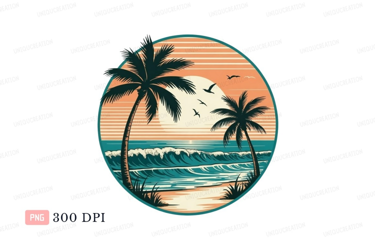 Similar Design Products to Tropical beach palm trees ocean waves sunset image