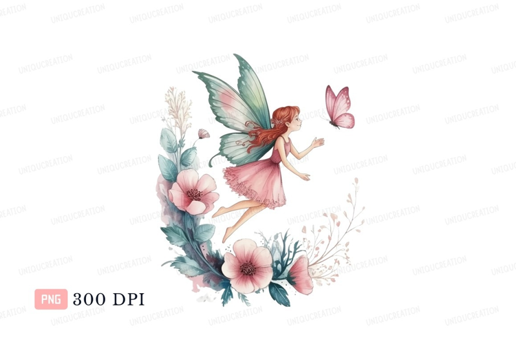 Illustration Fantasy Whimsical Pink Nature Green Flowers Fairy Butterfly Wings
