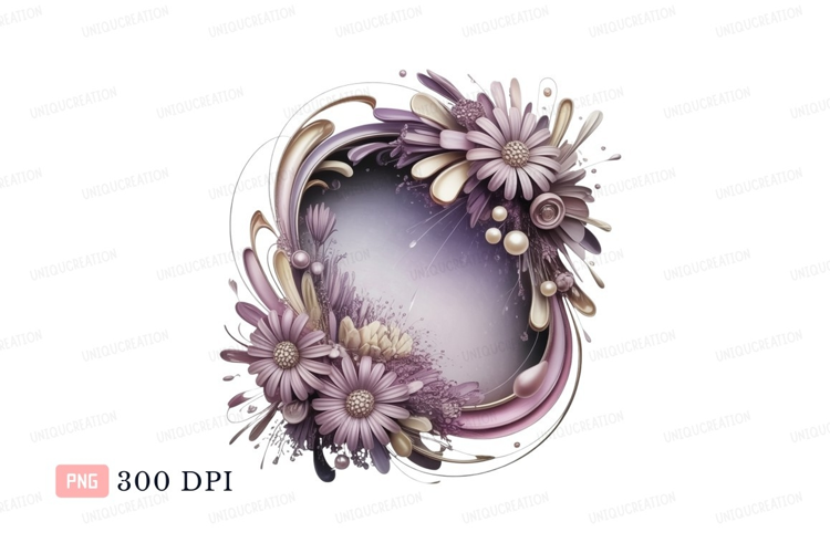 Similar Design Products to Floral frame with pearls and swirls purple