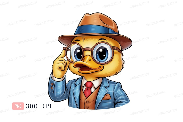 Dapper duck wearing spectacles and hat cartoon character example image 1
