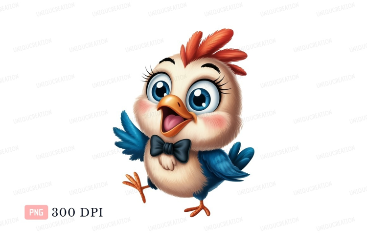 Cute chick with blue wings and bow tie bird cartoon example image 1