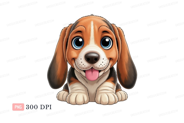 Adorable cartoon beagle puppy with big blue eyes animal example image 1