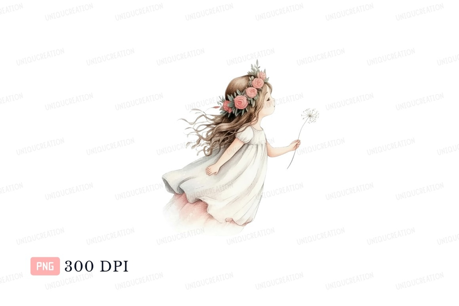 Child Delicate Girl Flower Dress Crown Hair White Blowing Innocence