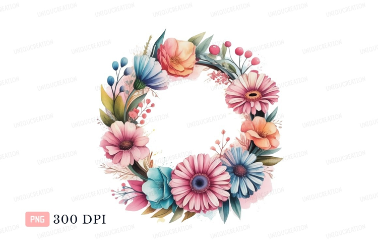 Floral wreath pink blue orange image example image 1