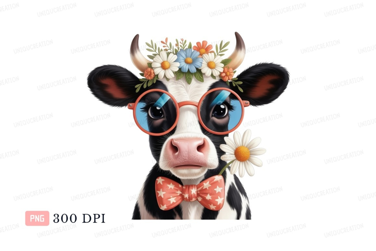Similar Design Products to Black white cow wearing flower crown glasses bowtie