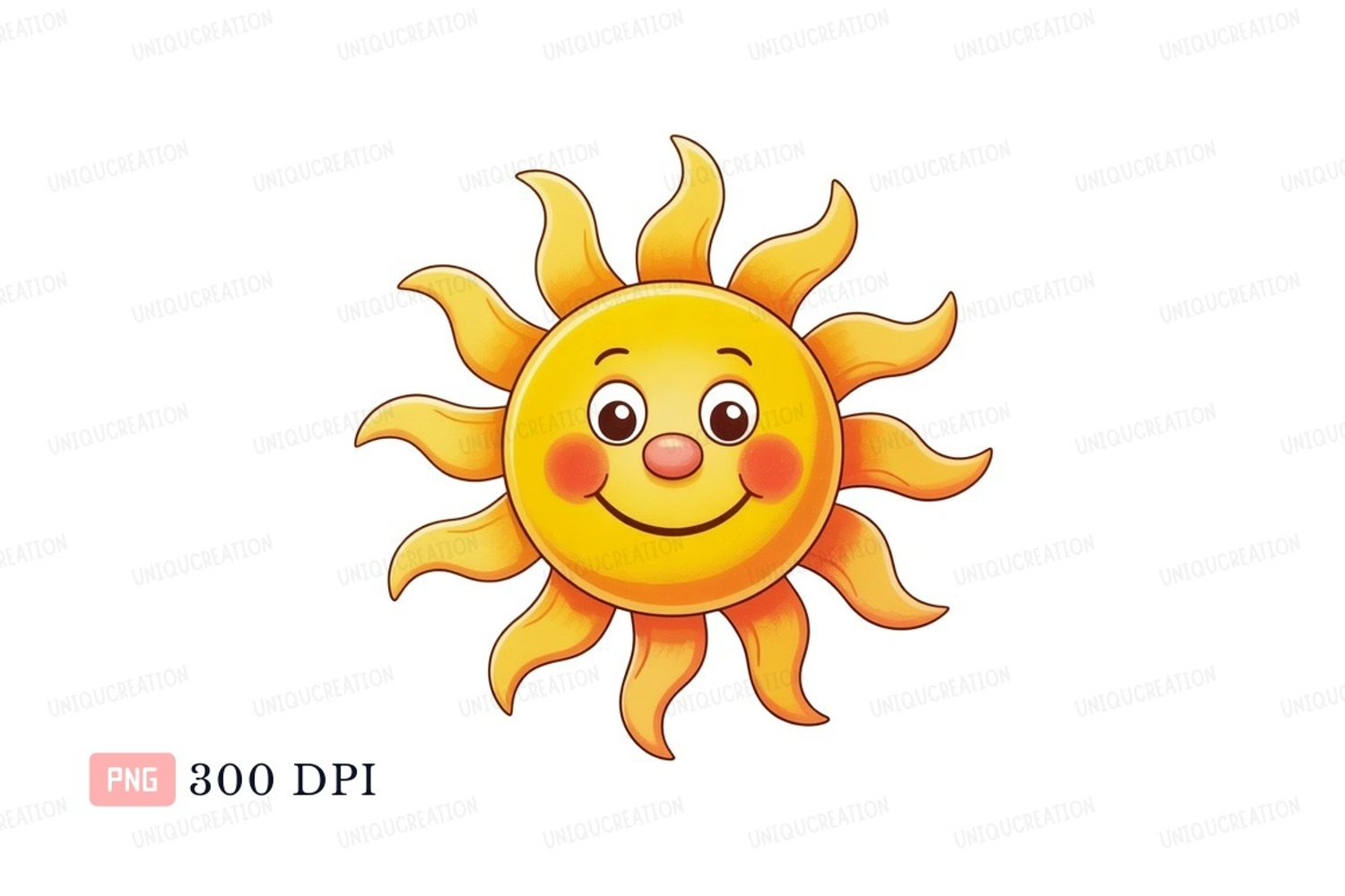 Cheerful smiling sun with rays yellow orange example image 1