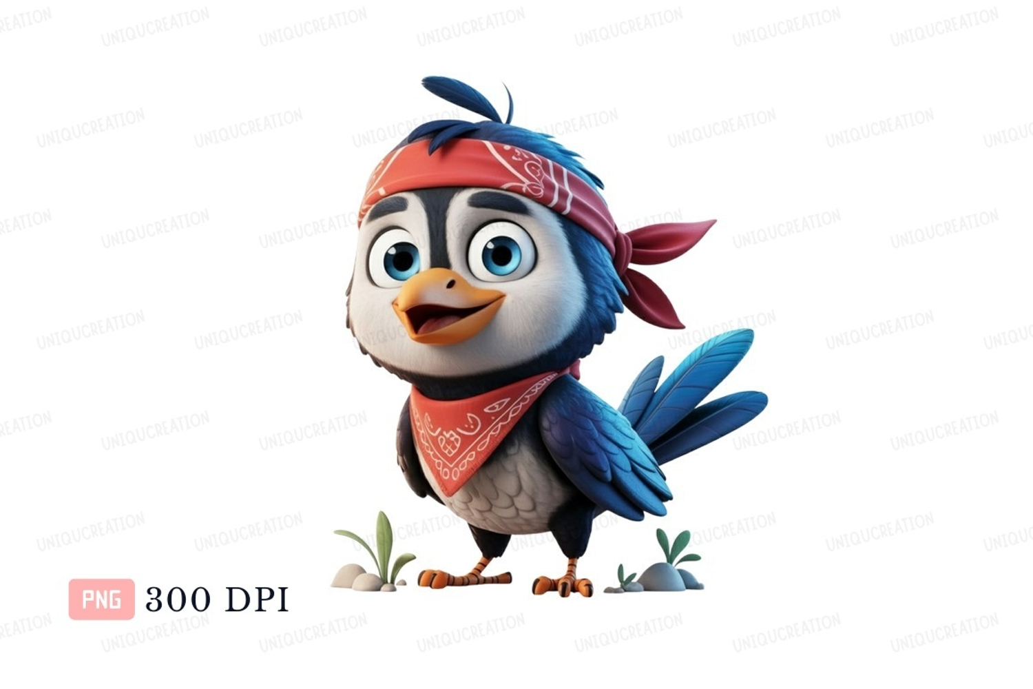Character Cartoon Cute Bandana Blue Bird Feathers Red Beak Avian