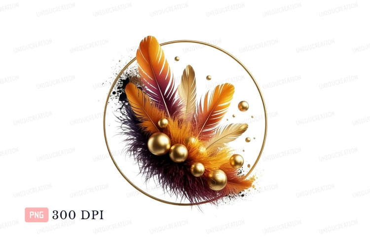 Similar Design Products to Golden spheres and colorful feathers orange purple