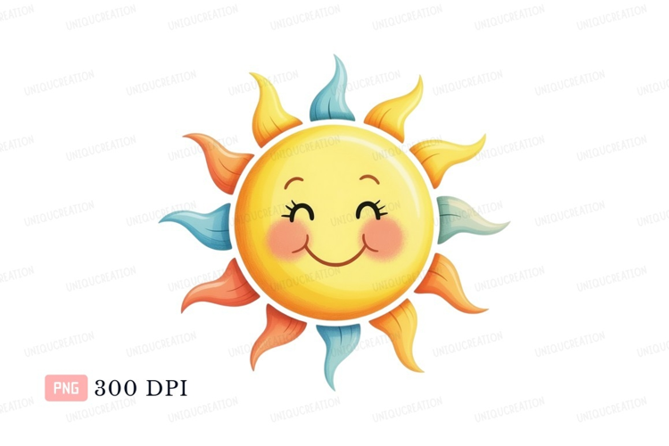 Cheerful sun with orange blue yellow rays happy smiling example image 1