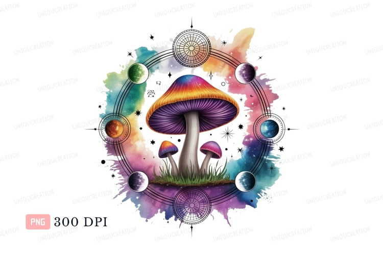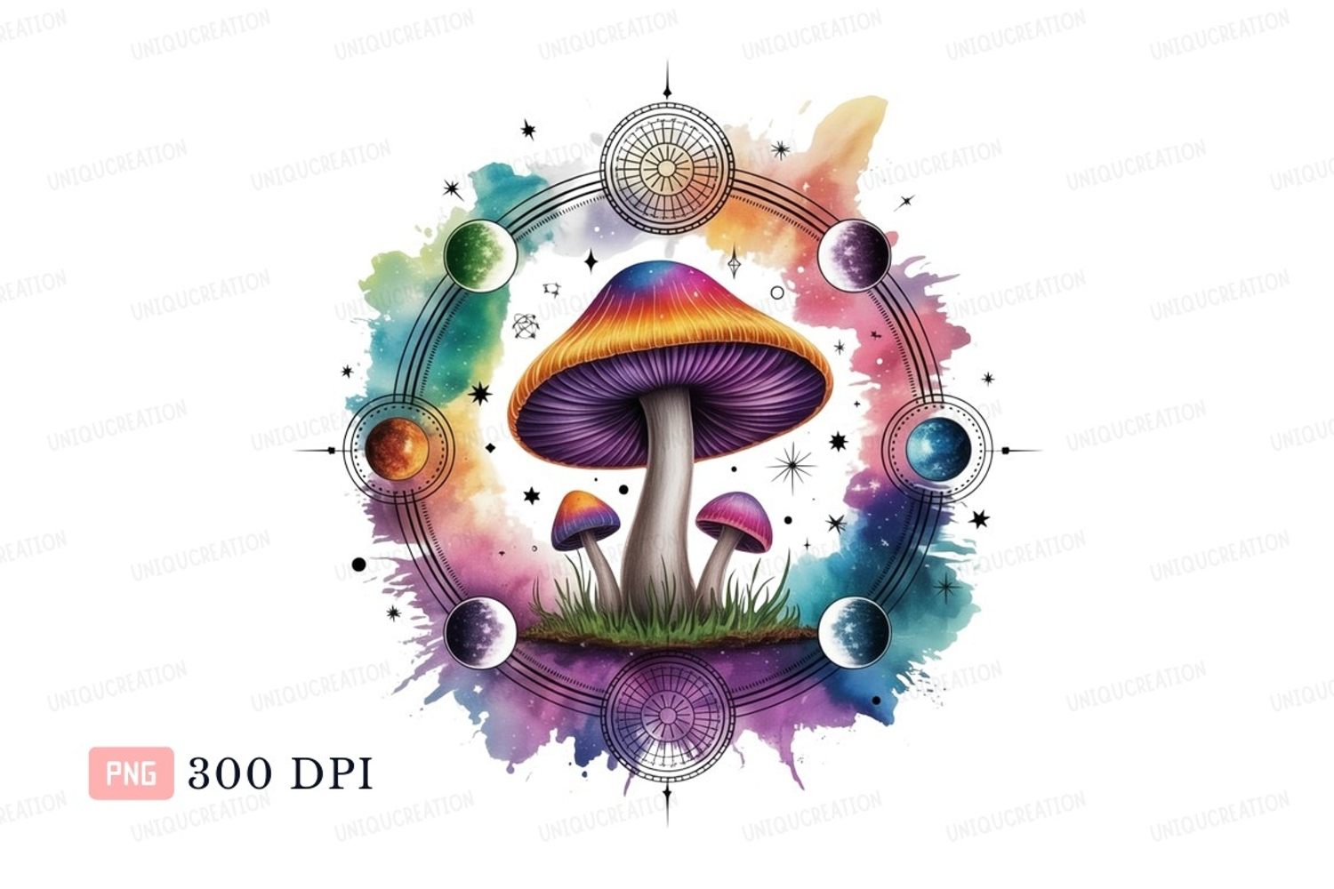 Celestial Astrology Cosmic Mushroom Circle Moon Stars Galaxy Psychedelic Planets