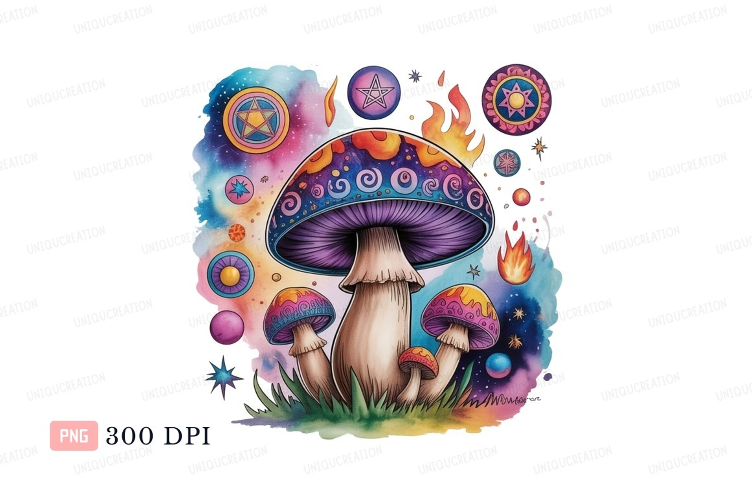 Psychedelic mushrooms cosmic symbols fire image example image 1