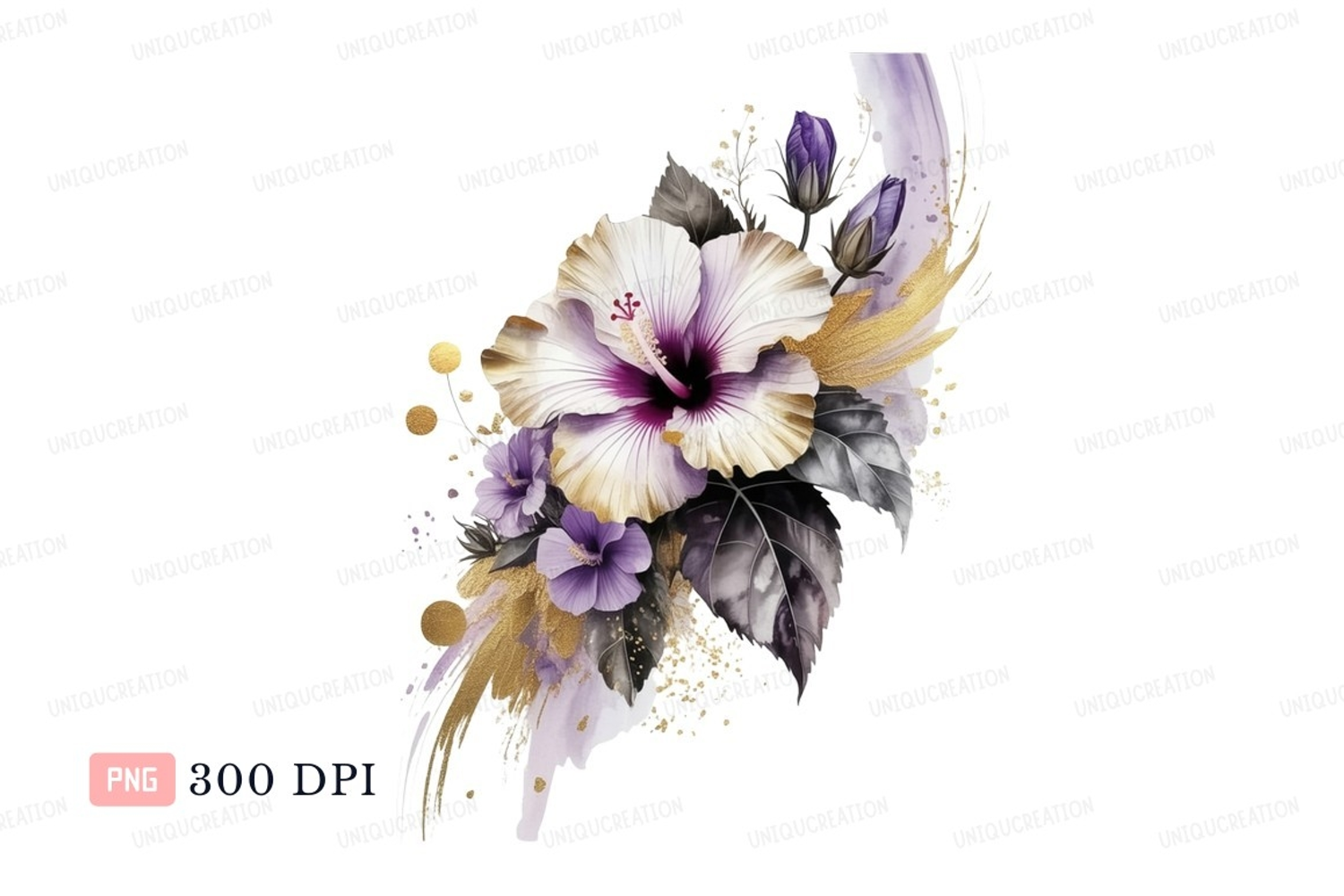 Decorative Illustration Elegant Gold Floral Artistic Purple Botanical Hibiscus White