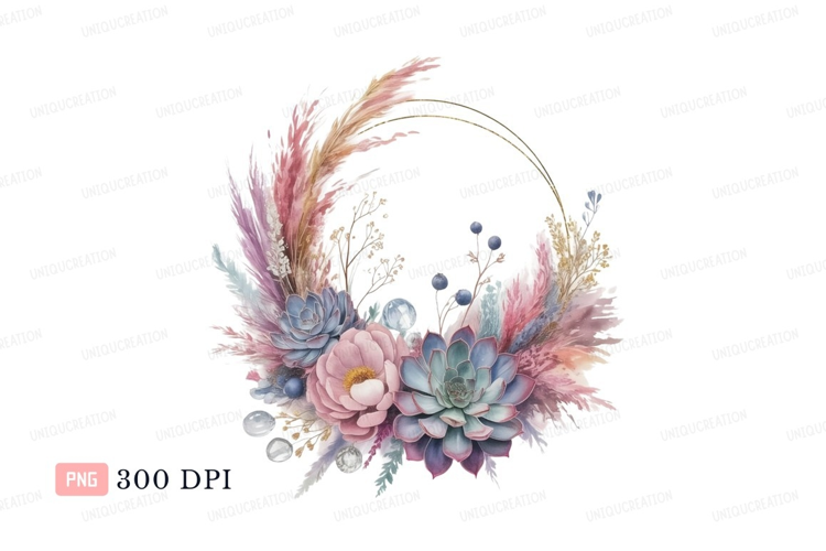 Gold Pink Floral Wreath Boho Blue Pastel Grass Succulents Pampas