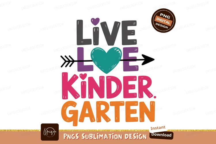 Live Love Kindergarten Bright Colors heart pink example image 1