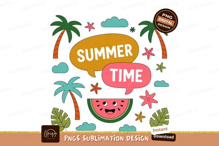 Summer time fruit clouds palms watermelon example image 1