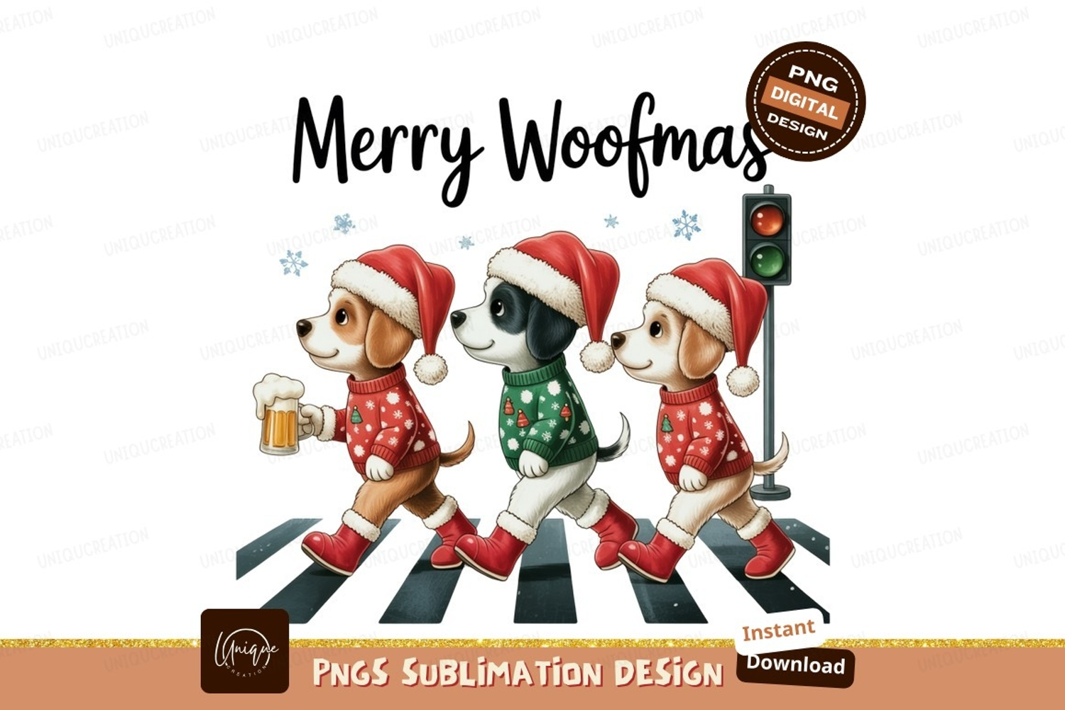 Similar Design Products to Festive dogs crossing street wearing santa hats christmas