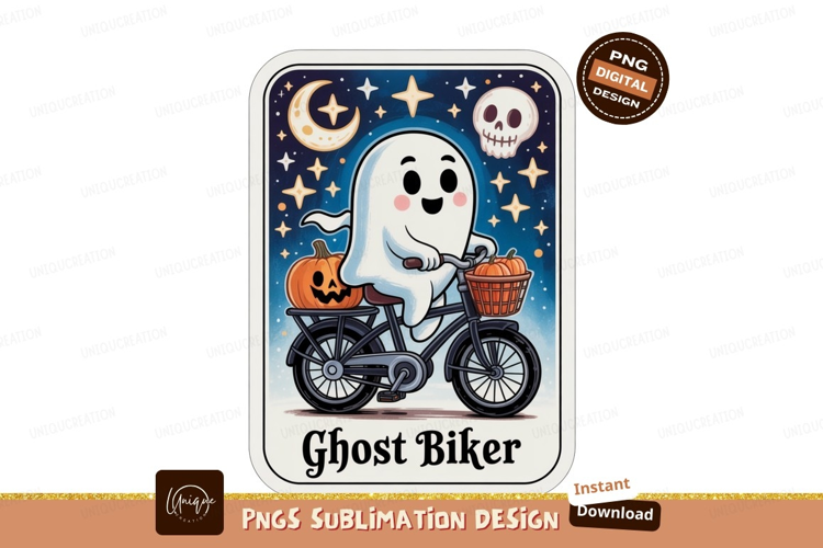 Ghost riding bicycle with pumpkins moon stars example image 1