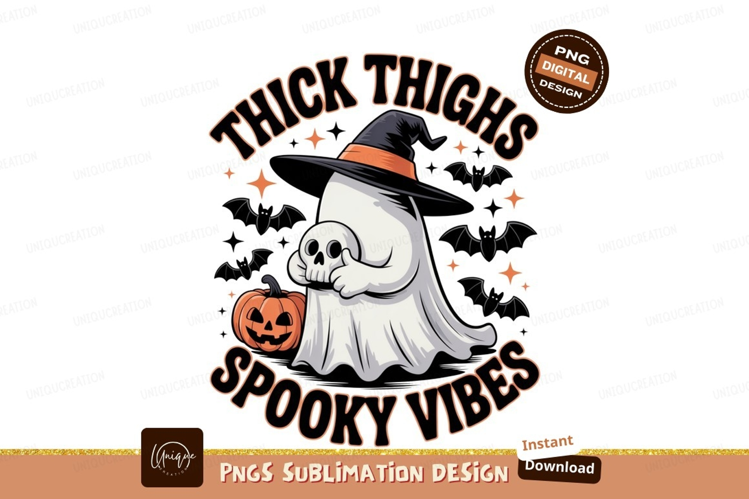 Ghost holding skull pumpkin hat bats image