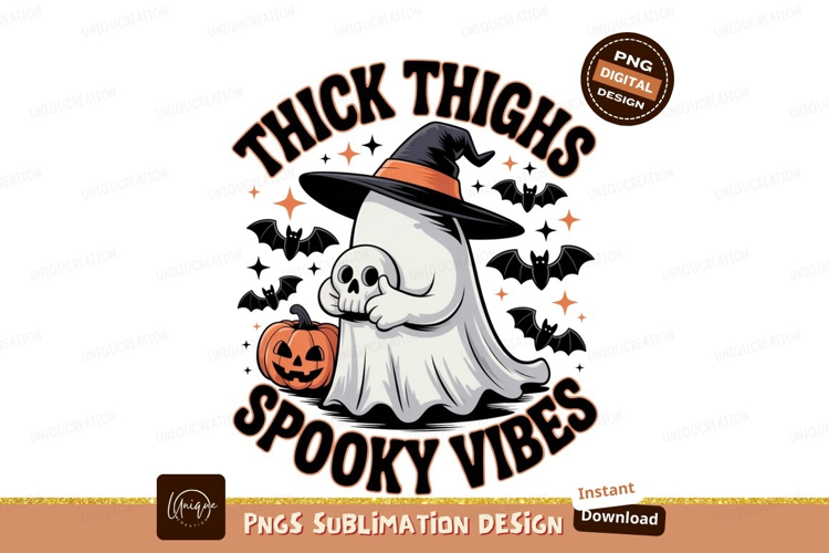 Ghost holding skull pumpkin hat bats image example image 1