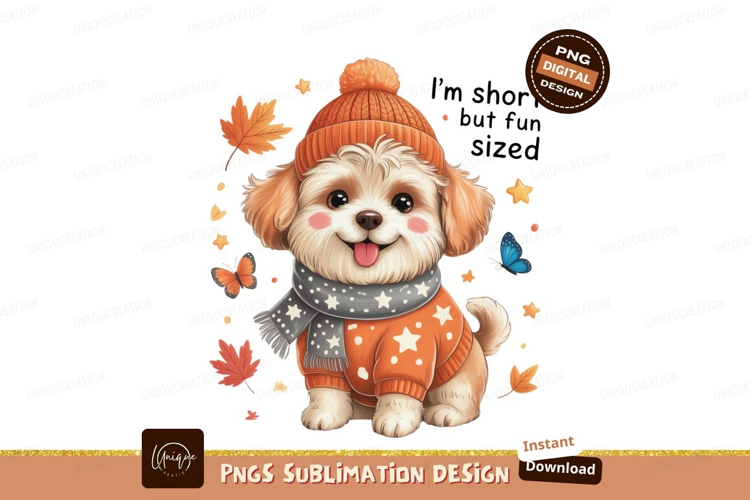 Similar Design Products to Adorable fluffy dog wearing winter clothes puppy orange