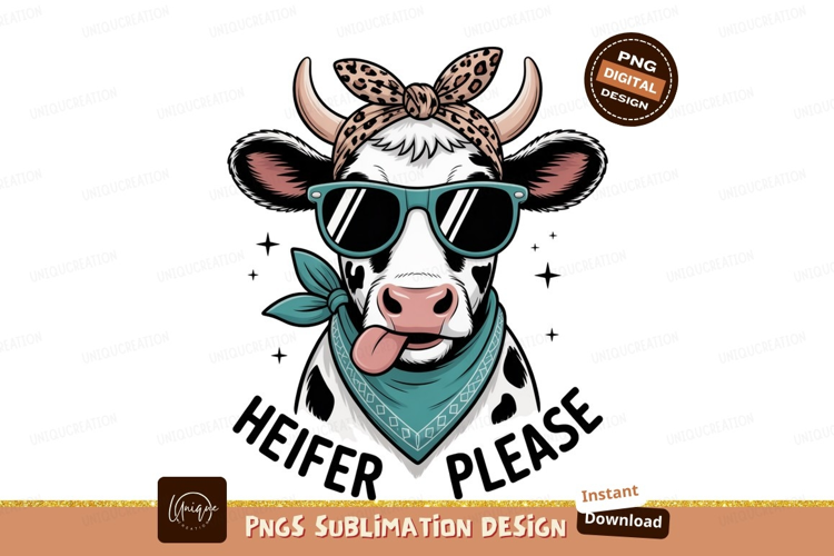 Cool cow wearing bandana sunglasses tongue black example image 1
