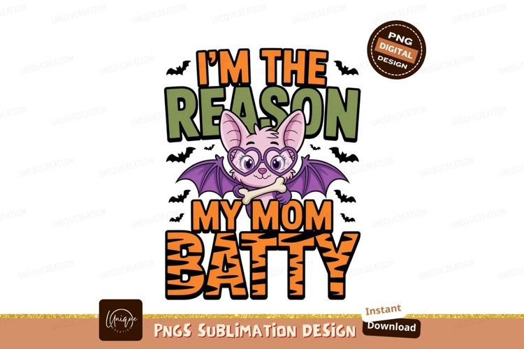 Cute bat wearing heart glasses holding bone halloween example image 1