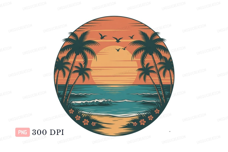 Tropical sunset ocean palm trees birds beach example image 1