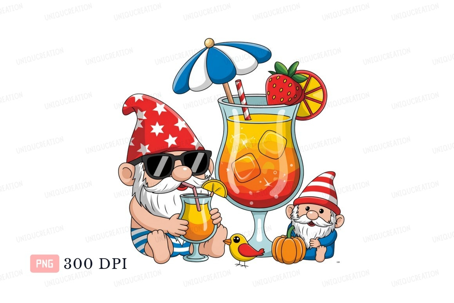 Gnomes enjoying summer drinks cocktail fruit example image 1