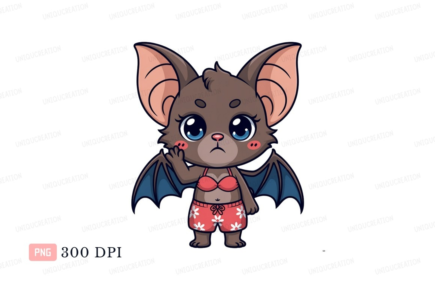 Cute bat wearing bikini and shorts animal cartoon example image 1