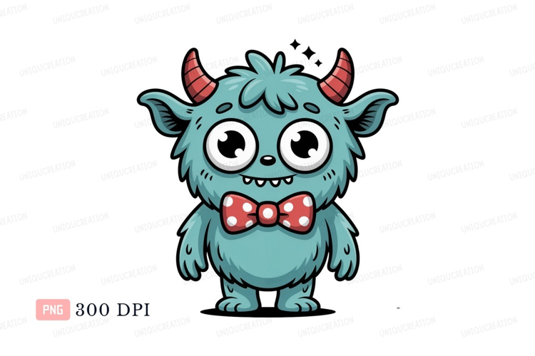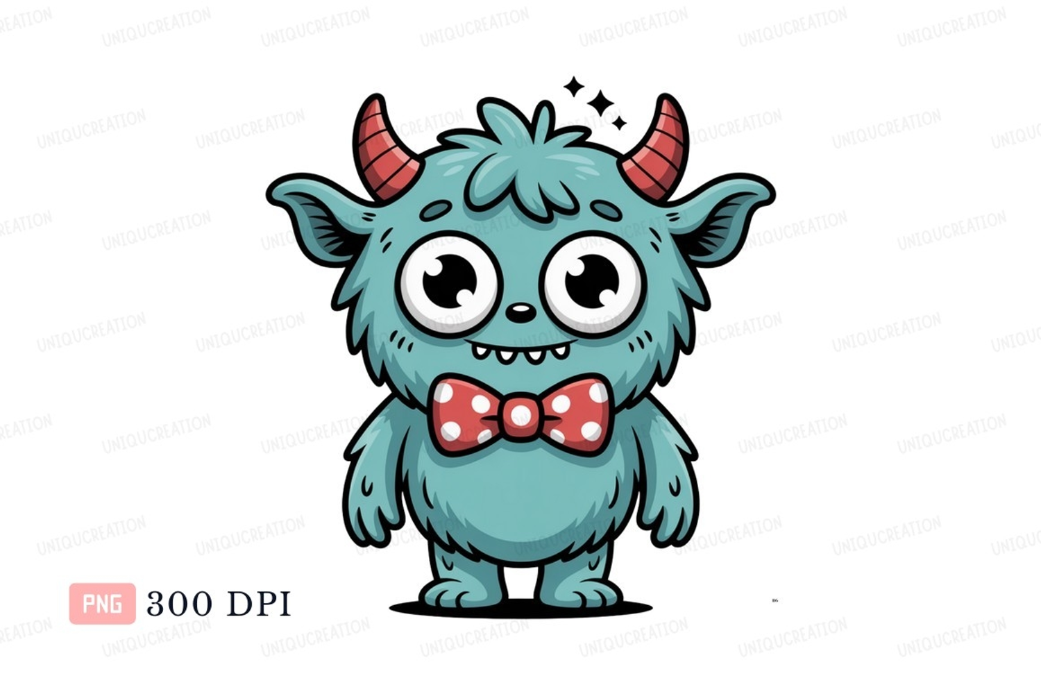 Similar Design Products to Blue furry monster with horns and bow tie image