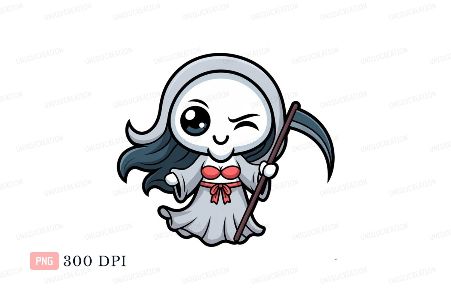 Character Cartoon Halloween Cute Death Spooky Grim Reaper Scythe Winking