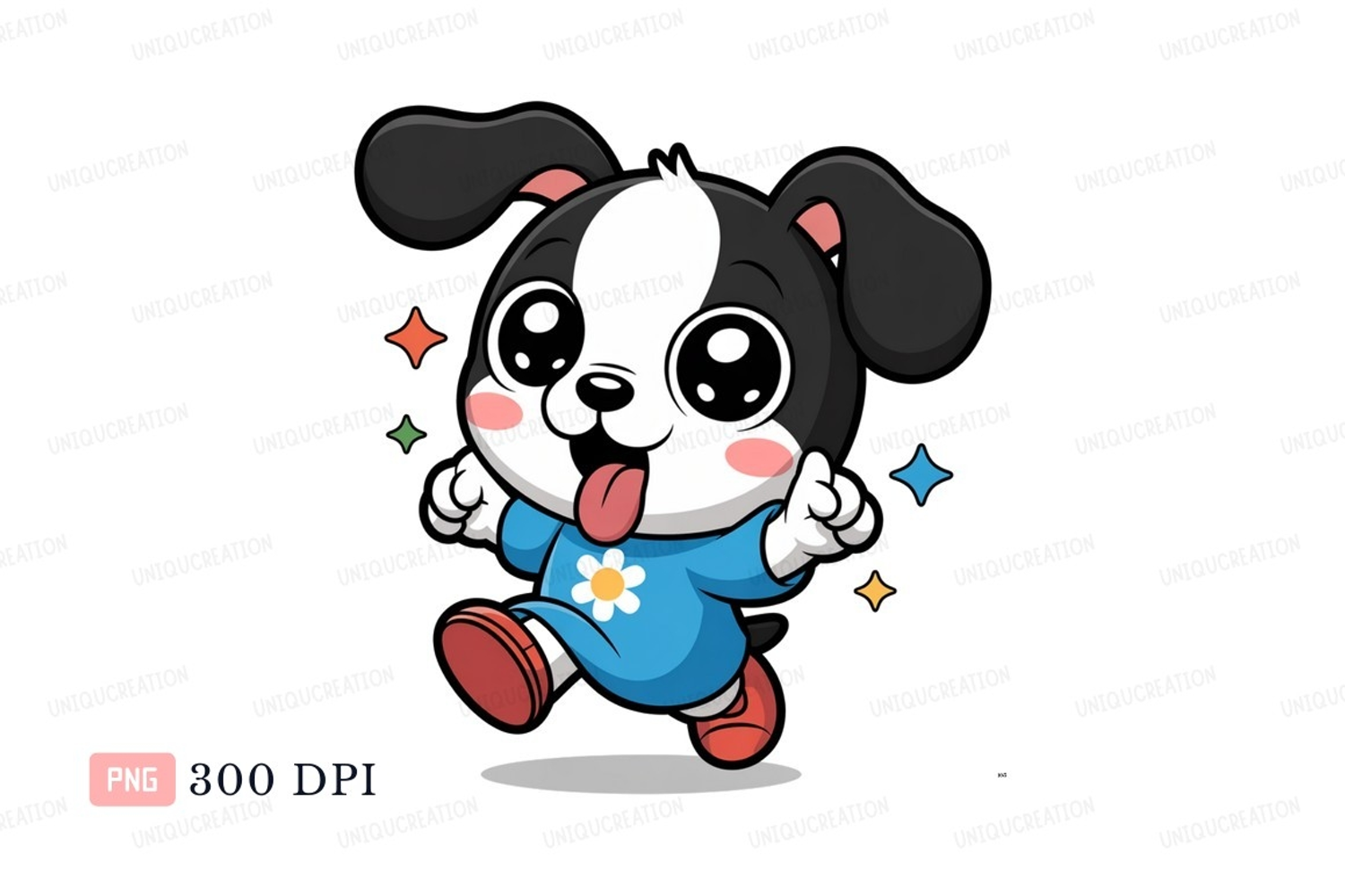 Cartoon Cute Happy Flower Dress Blue Red Puppy Dog Running