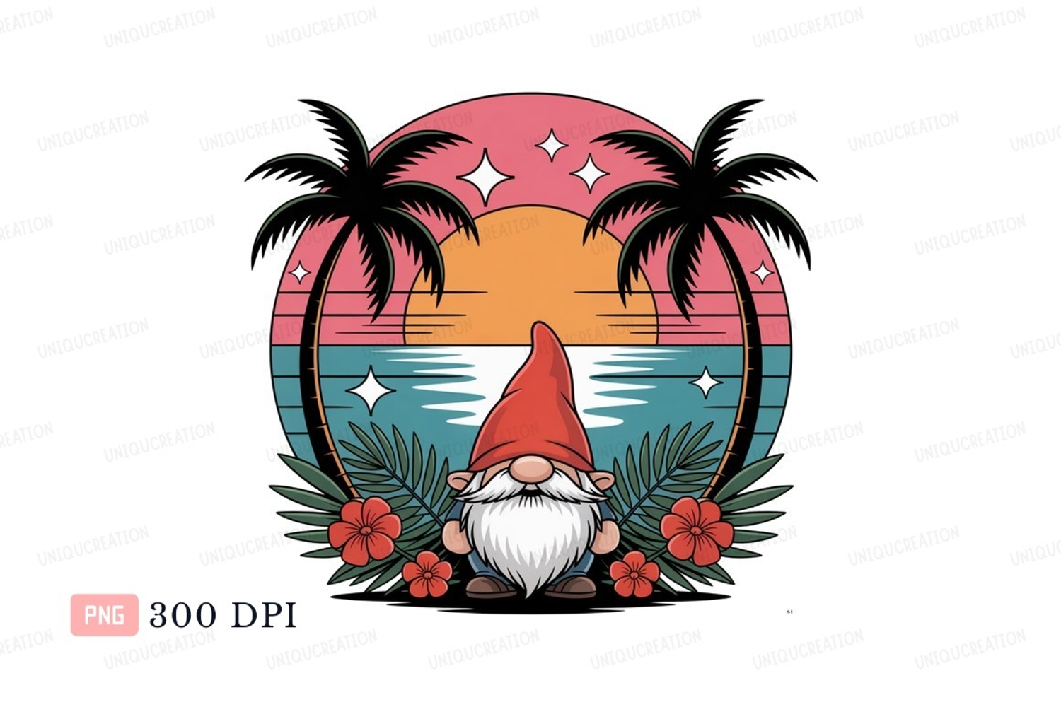 Ocean Flowers Beach Sunset Tropical Trees Vacation Palm Stars Gnome