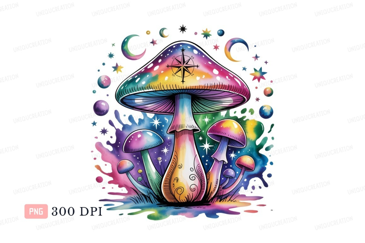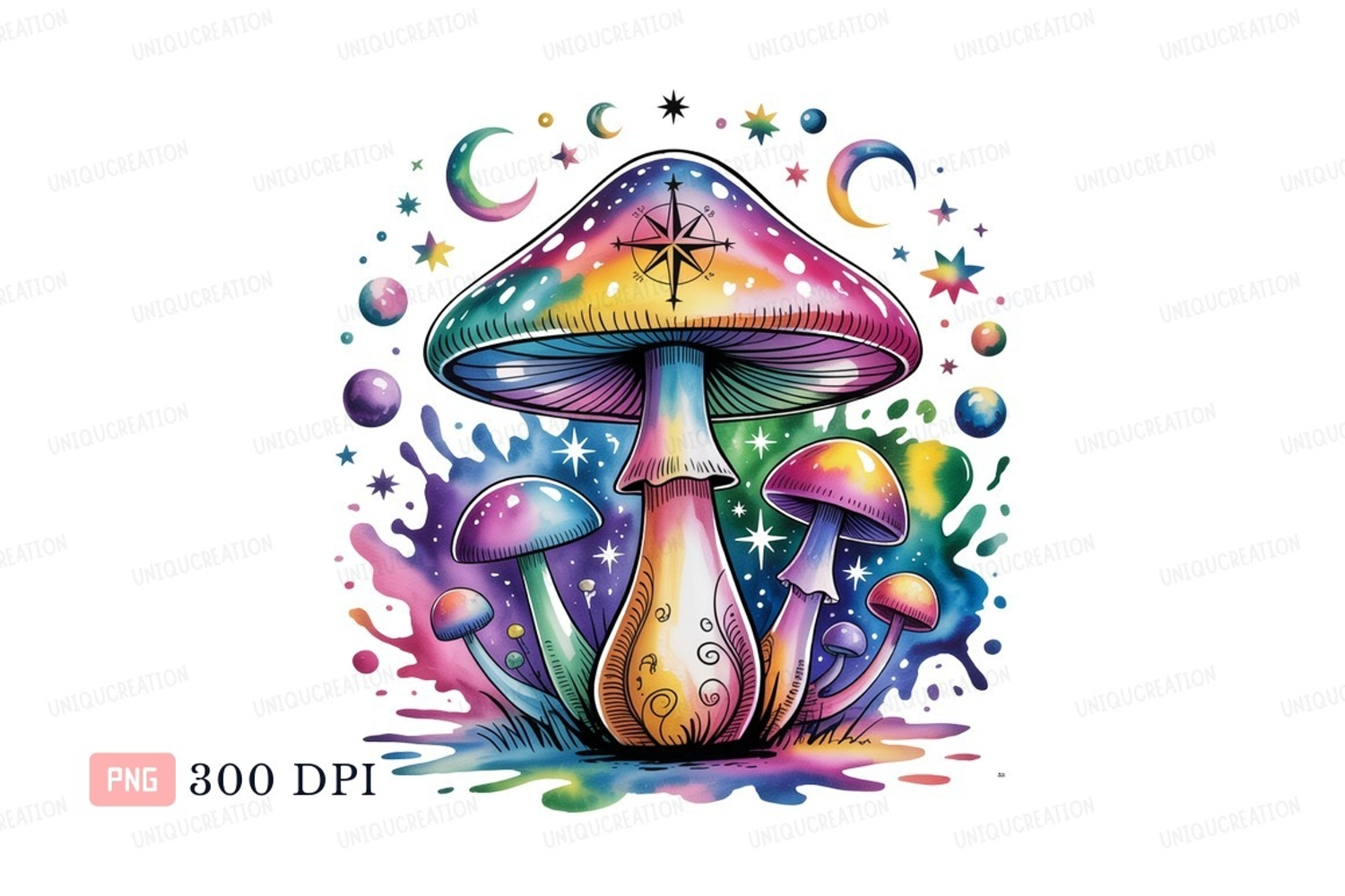 Fantasy Colorful Celestial Surreal Magic Vibrant Mushroom Star Moon Psychedelic