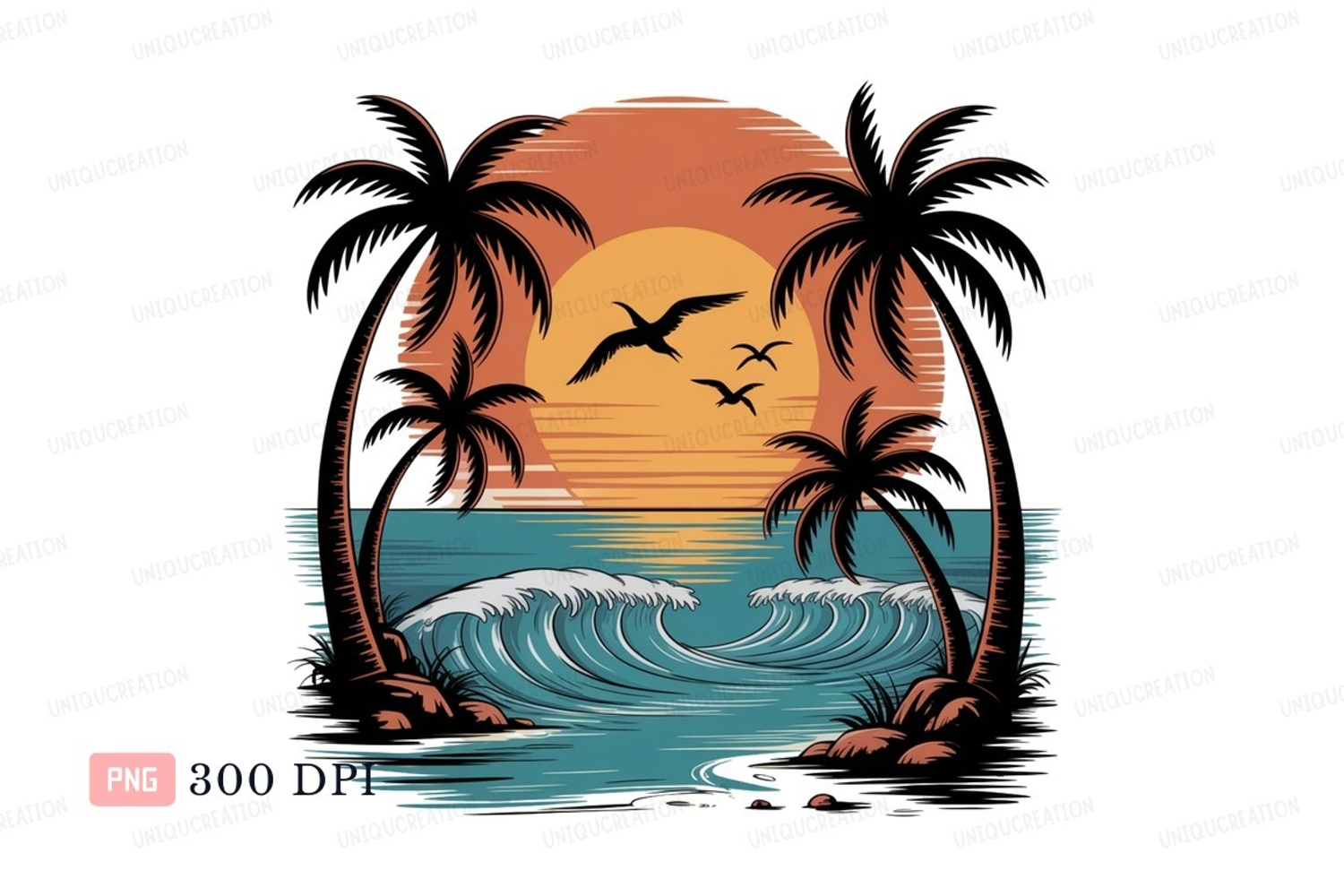 Similar Design Products to Tropical sunset ocean waves birds palm