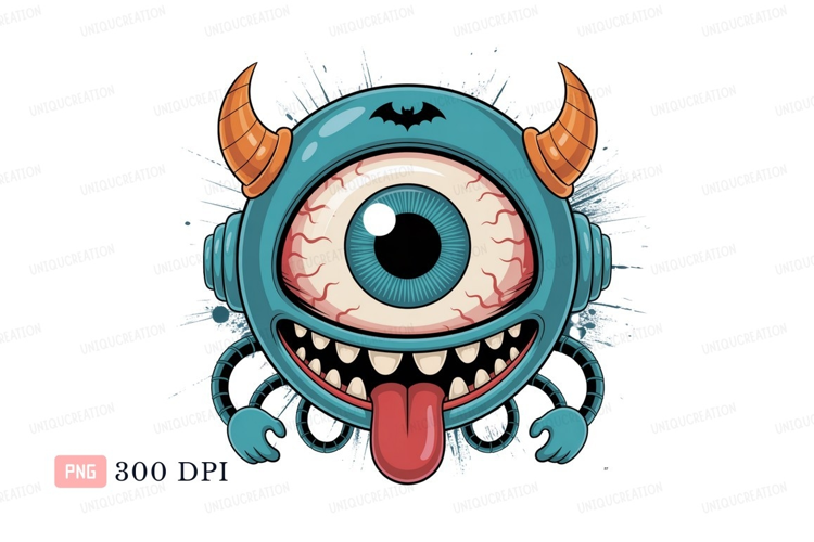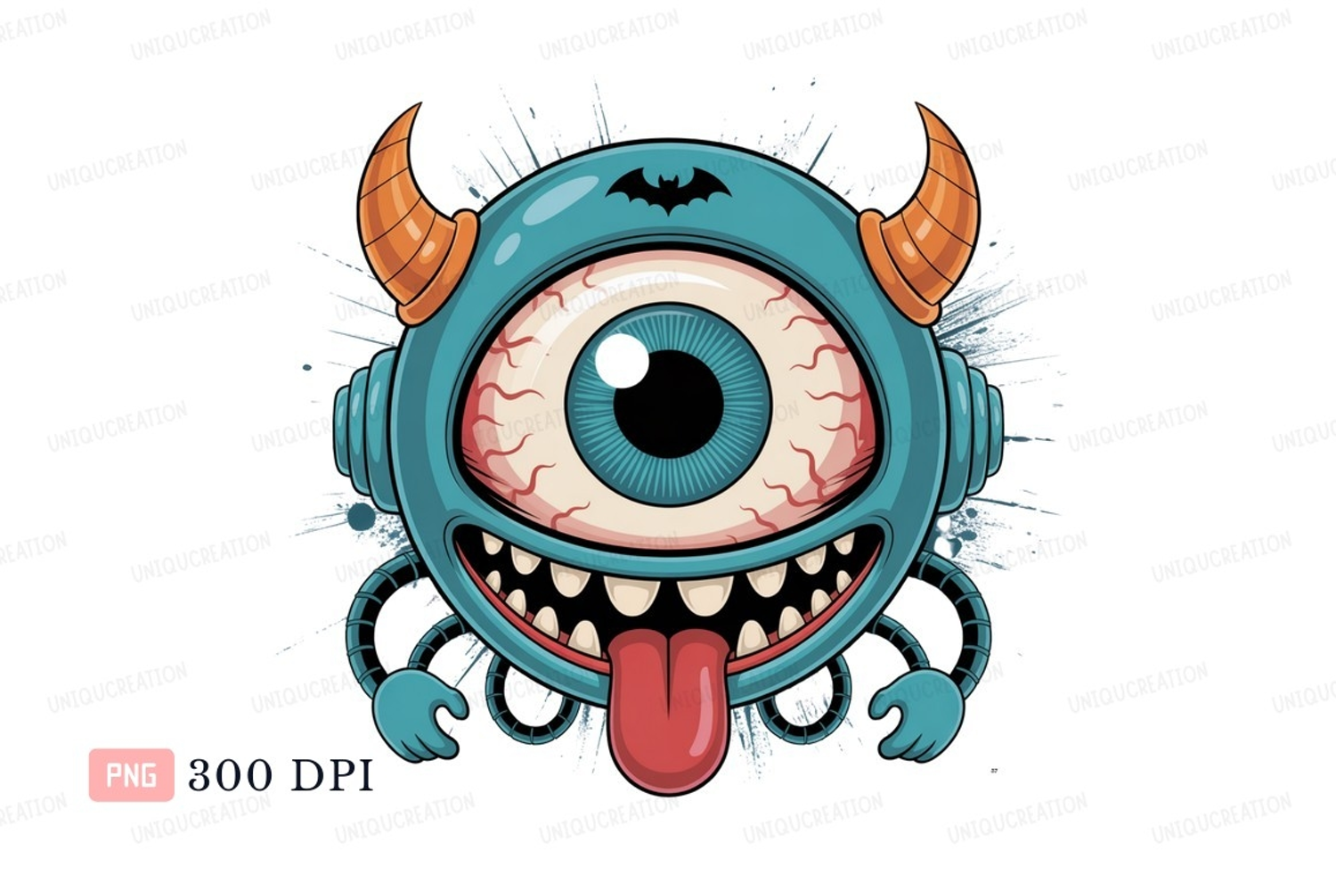 Similar Design Products to Blue cyclops monster with horns and tongue orange