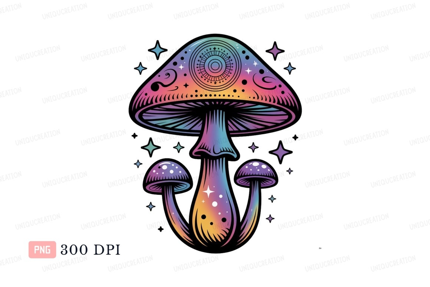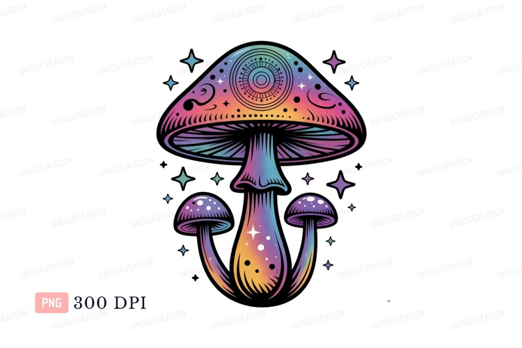 Psychedelic mushroom cluster with celestial stars fantasy example image 1